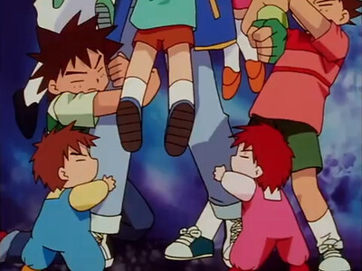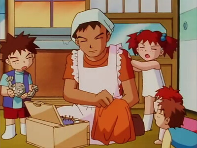 * Cuando Flint y Ash caminan juntos por la ciudad, Flint le dice que Brock tiene que cuidar de sus 10 hermanos y que por eso no puede ir a competiciones como la Liga Pokémon, pero en realidad son 9 hermanos, no 10.