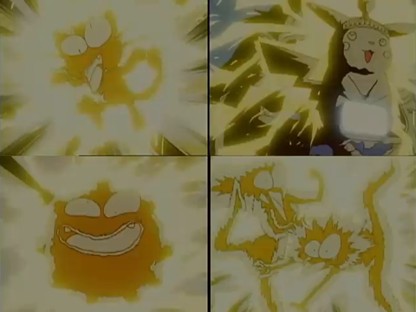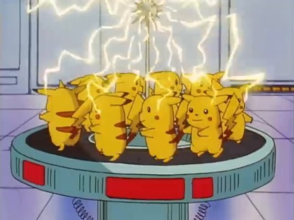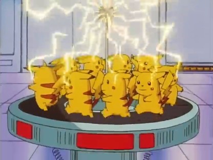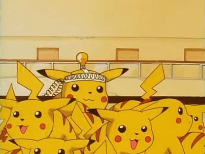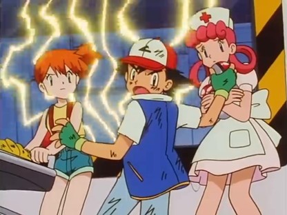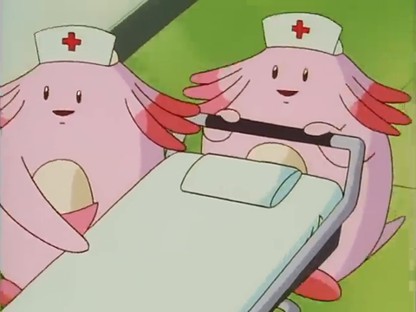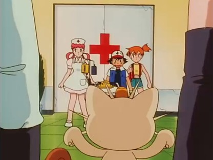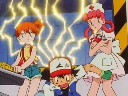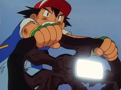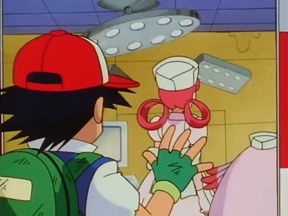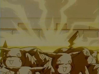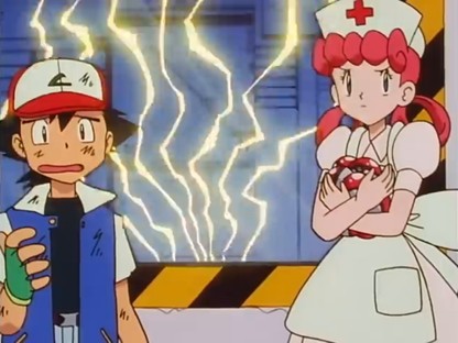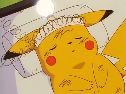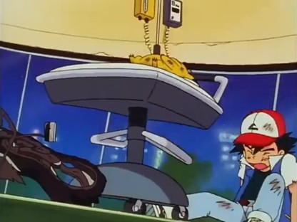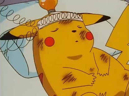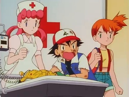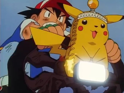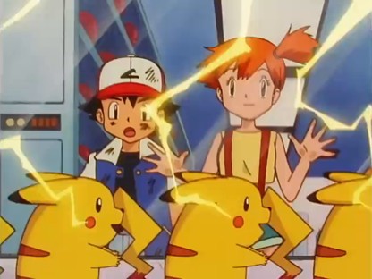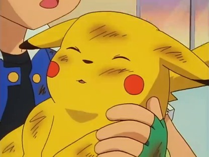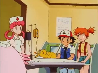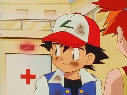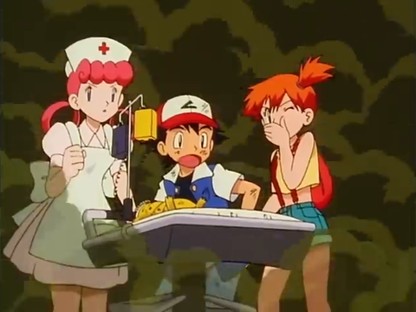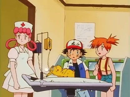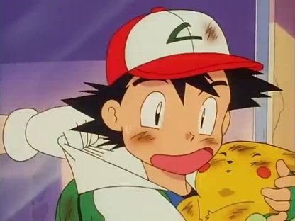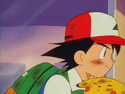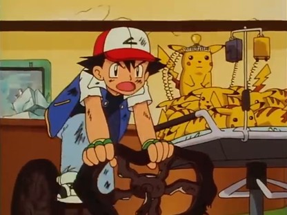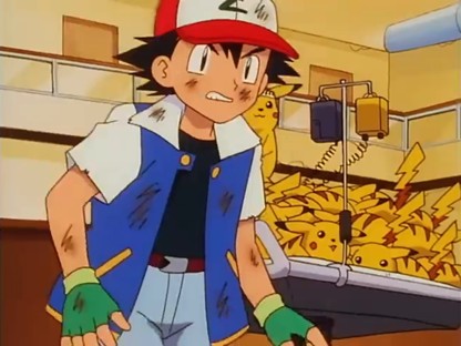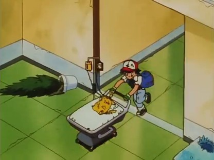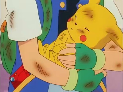 de la lucha con los Sperrow, Pikachu está debilitado y Ash tiene que llevarlo a