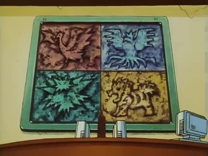 * En los mosaicos del Centro Pokémon, Ash confunde a Articuno (Pokémon que todavía desconoce) con Ho-Oh.