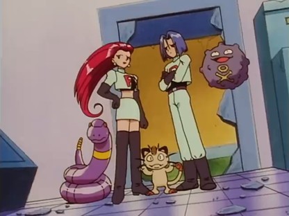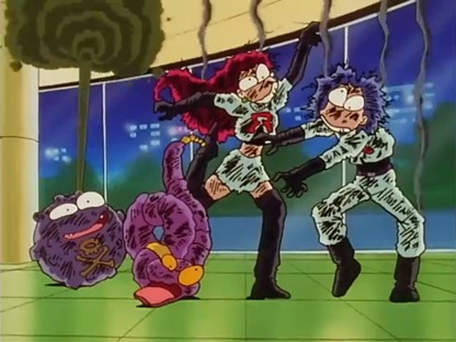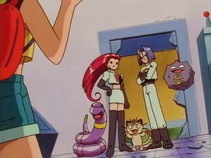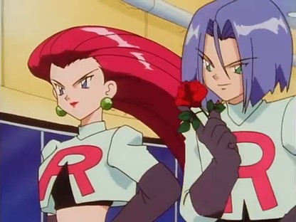 * En el cartel de Se Busca que roba el Equipo Rocket se puede ver que la flor de james es de un color morado y no roja como en los demás episodios.
