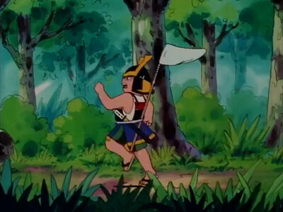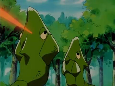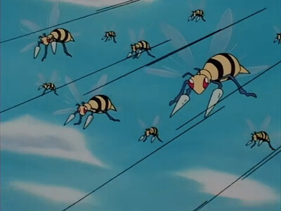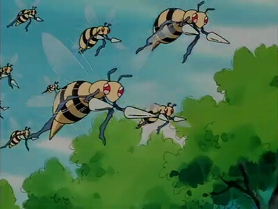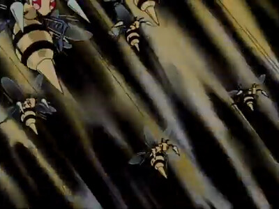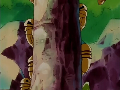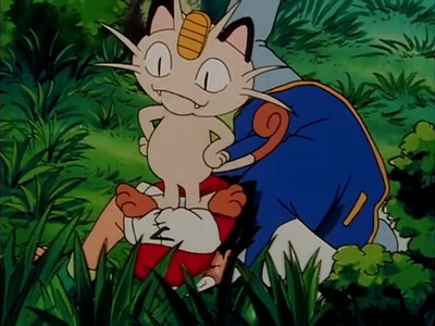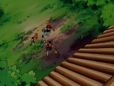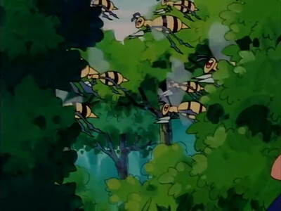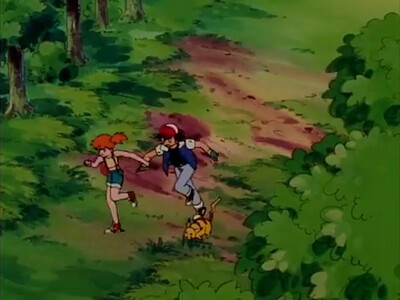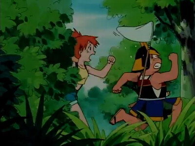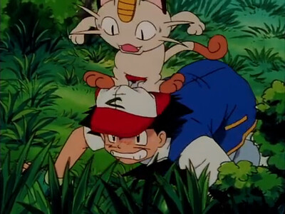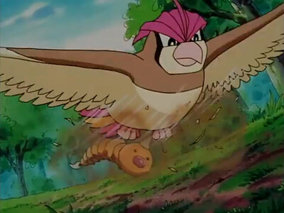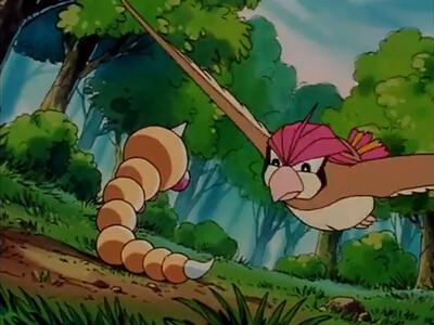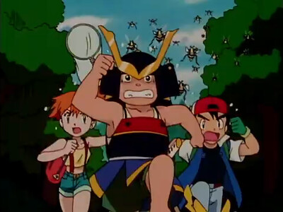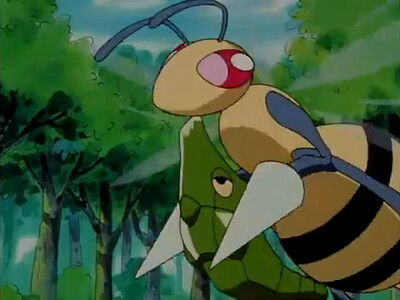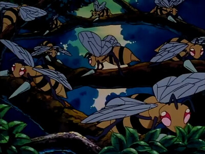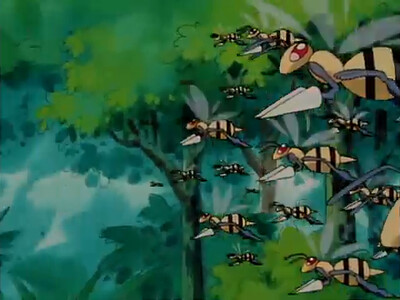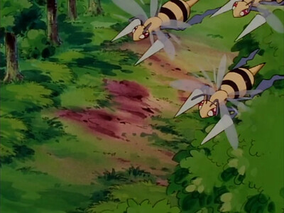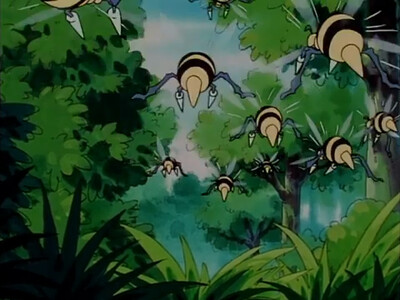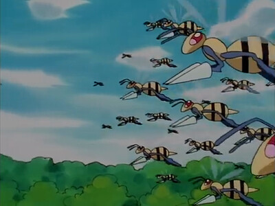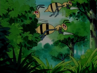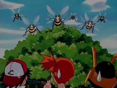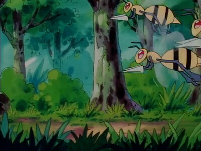 * Cuando Ash se levanta para rescatar a su Metapod, Meowth salta sobre él y le araña. Ash llora durante varios segundos, y aparecen Jessie y James subidos a una pequeña montaña. Cuando dicen su lema, despiertan a los Beedrill. Ash sale huyendo, y el Equipo Rocket empieza a perseguirle —esto implica que Jessie y James salten del precipicio hacia el suelo—. Sin embargo, Meowth también salta junto a ellos. Esto es un error, pues desde el principio Meowth se encontraba abajo, junto a Ash.