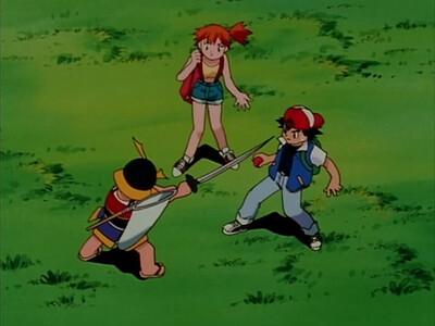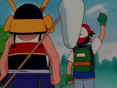 * Al final del episodio, cuando el samurai y Ash se despiden como amigos, Misty le pide a Ash que, si se encuentran otra vez con él, no luchen con sus Metapod. Sin embargo, esto no sería posible porque el de Ash ya había evolucionado.
