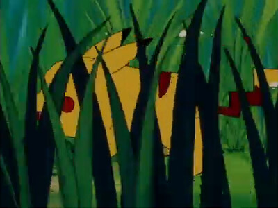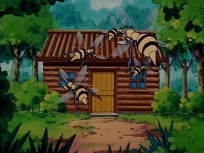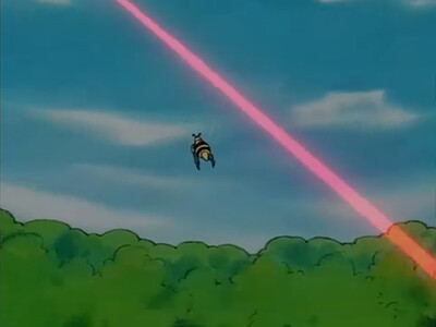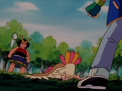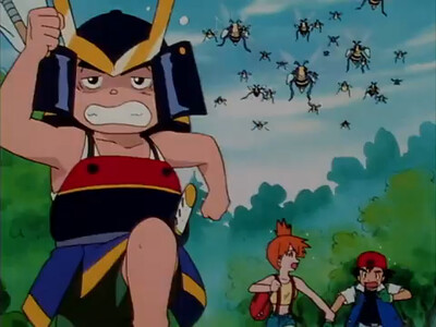 * Cuando los Beedrill atacan la casa del samurái con sus aguijones dejan unos agujeros en la puerta. Cuando la cámara enfoca la imagen desde afuera, esos agujeros han desaparecido.